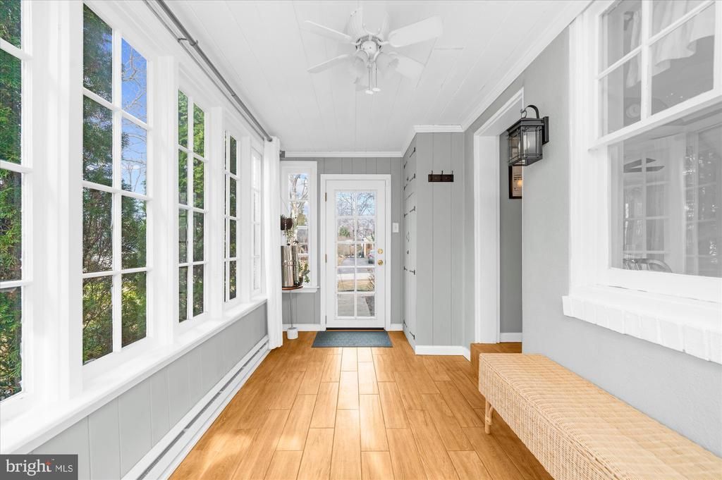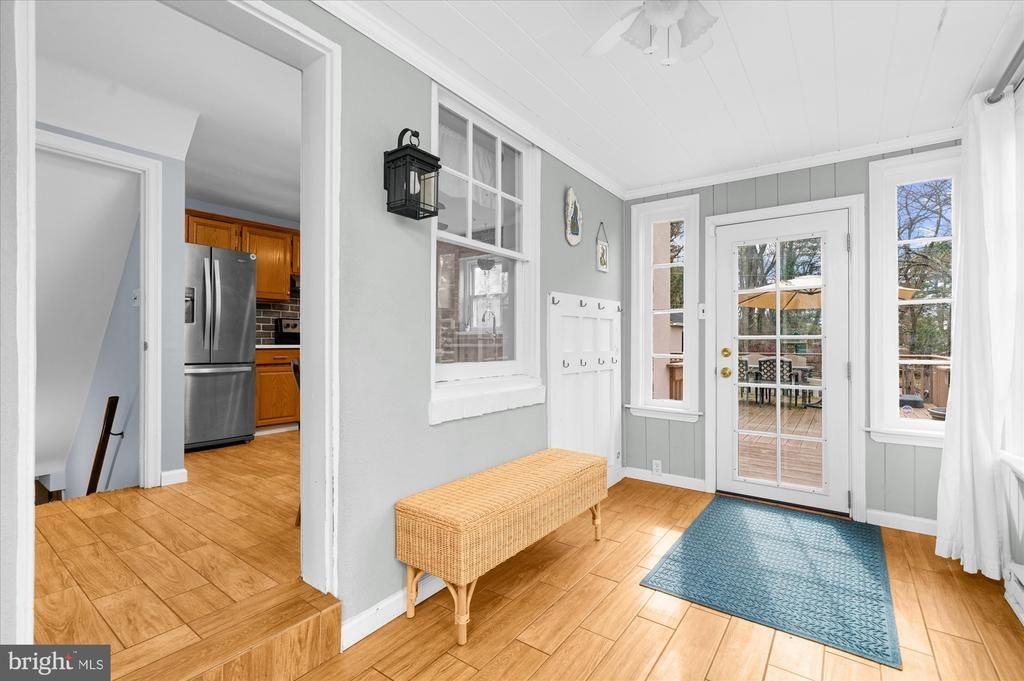 Charming and well-maintained Cape Cod situated on a spacious, tree-lined lot. This inviting home features beautiful hardwood floors, abundant natural light, and a comfortable layout perfect for everyday living. The bright living room offers a large picture window, cozy brick fireplace, and built-in shelving, while the kitchen includes stainless steel appliances, ample cabinetry, and a dining area. The recently remodeled bathroom showcases stylish finishes including a modern vanity and classic tile surround. A sun-filled entryway provides additional living space and easy access to the expansive backyard and deck—perfect for relaxing or entertaining. Major updates include a newer roof with a 25-year transferable warranty, offering peace of mind for the next owner. The property also features a detached two-car garage, long driveway for ample parking, and a generously sized yard. Conveniently located near local shops, dining, walking trails, and commuter routes.