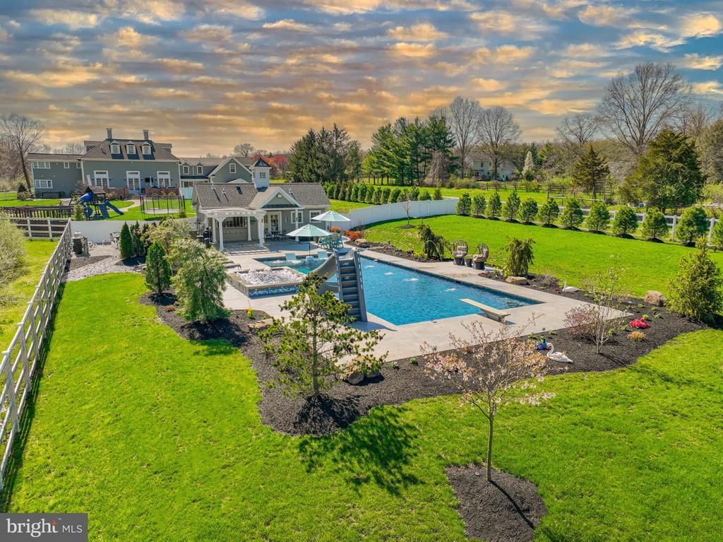 Set on nearly 8 private acres in Delaware Township, this 2021 custom-built estate offers a rare blend of privacy, luxury, and effortless access to the lifestyle destinations of Lambertville, New Hope, and Stockton. Designed as a true year-round retreat, the home is ideal for both refined everyday living and unforgettable entertaining. Soaring ceilings, a chef’s kitchen, and a 1st Floor primary suite anchor the main level, while multiple guest suites and flexible living spaces span three finished levels. The lower level is designed for relaxation, wellness and hosting at scale. Outdoors, a resort-style setting awaits with expansive stone patios, firepit, gardens, and a stunning in-ground pool with spa and pool house – creating a private escape that rivals a boutique resort. Enjoy nearby hiking, preserved open space, and Blue Ribbon schools. Peaceful and secluded, yet just minutes from dining, culture, and charm – this is refined country living at its best.