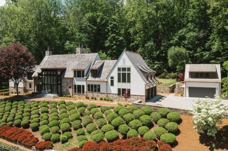 An unprecedented offering has come, representing new style and vision to historic Bernardsville Mountain. For the first time, the work of a noted NYC developer has arrived in NJ. With past achievements including NYC and international projects, luxury commercial properties, plus A-List Manhattan residences, his incomparable work has come to the Somerset Hills. Soaring ceilings, oversized windows framing countryside views, European white oak wood floors, wood-paneled and arched doorways, uncommonly beautiful bespoke cabinetry, and built-ins are among the defining statements of the interior finishes. Carefully designed for a blend of private living and exceptional entertaining, gathering spaces exist on all three levels and extend to the impeccable grounds. Every option, including single floor living is offered, with primary suites on the first and second floors. A jaw-dropping 20-ft atrium, two great rooms, an incomparable country chic kitchen with adjoining butler's pantry, as well as a ground-floor wine cellar grace the inside. With views of the Somerset Hills, this 12-acre estate commands its ground and complements its surroundings. Extensive natural woods provide outstanding privacy and thoughtfully landscaped gardens, multiple patios, a pond, and country brick and stonewall walking paths encompass the exquisite property. A carriage house provides additional garage space for car enthusiasts and private living quarters above. This noteworthy offering is not to be missed.