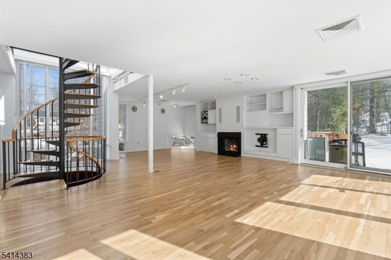 Expansive contemporary residence situated on a serene, wooded lot offering exceptional space, natural light, and a tranquil setting. Designed for both everyday living and entertaining, the open floor plan showcases hardwood floors, soaring ceilings, and expansive windows that flood the space with natural light while framing serene views. The main level features a spacious living room with fireplace and custom built-ins, seamlessly connected to the rear deck overlooking an in-ground pool, for effortless indoor-outdoor living. The bright kitchen is appointed with white cabinetry, and ample counter space, opening to the dining area for easy gatherings. The primary suite serves as a private retreat, complete with a marble bath featuring a soaking tub, oversized glass shower, and walk-in closet. Additional bedrooms are well-proportioned and supported by multiple full baths throughout. The lower level offers flexible living space ideal for recreation, fitness, studio, or media use, along with an indoor spa area featuring a soaking tub. A striking spiral staircase enhances the home's architectural character while connecting the living spaces with style. Additional highlights include skylights, abundant storage, a two-car garage, and private outdoor areas ideal for entertaining. Conveniently located near major highways, schools, and shopping. Available immediately