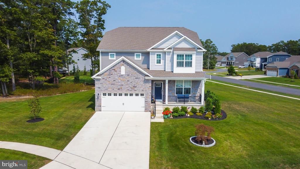 Welcome to the prestigious Harbor Pines Golf course Community, where sophistication meets serenity. Nestled on an exclusive cul-de-sac only 5 incredible homes, this nearly new residence offers approximately 3,400 sq ft of refined living space, plus a full unfinished basement ready for your customization. Step inside to discover modern luxury, including vinyl plank flooring throughout most of the first level and a show-stopping gourmet kitchen flooded with natural light. Enjoy a massive center island with bar seating, quartz countertops, double oven, stainless steel appliances, a butler pantry, and an oversized walk-in pantry - an entertainers dream! The inviting living room features a cozy gas fireplace and a convenient first-FIRST FLOOR BEDROOM with adjacent full bath offers flexibility for guests or multi-generational living. Upstairs, the second level impresses with a spacious family room, 3 additional bedrooms and 2 full bathrooms. The primary suite is a luxurious retreat with an elegant en suite bathroom featuring dual sinks and a truly expansive walk-in closet. A dedicated SECOND FLOOR LAUNDRY room adds everyday convenience . The exterior is just as exceptional. Located on a PREMIUM corner lot (120X180), plenty of room for a pool, the property boasts professional landscaping, an in-ground irrigation system, and a newly added rear deck. Live the elevated lifestyle you deserve in one of the area's most distinguished golf course communities.