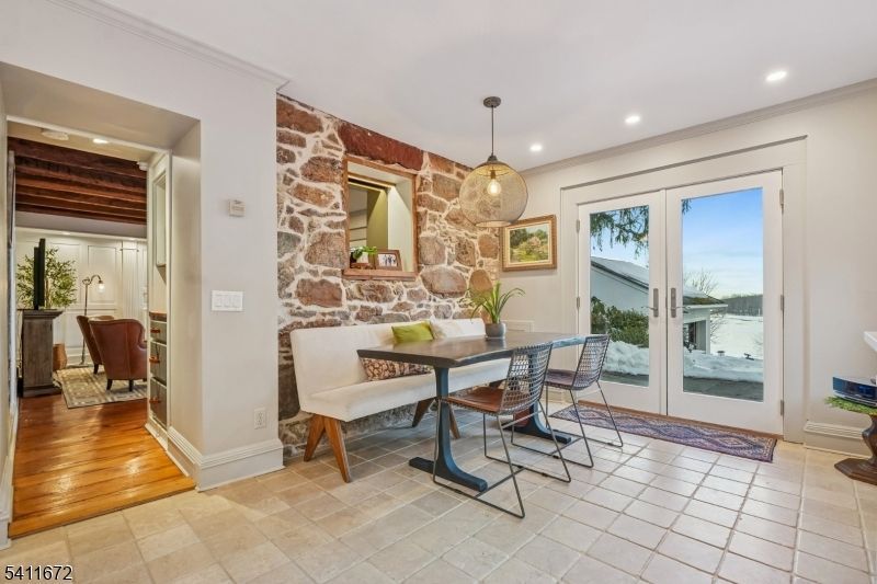 206 Mt Kemble Ave is a stunningly renovated 1850's 4 story home where timeless style meets modern comfort. This 4-bed, 2-bath house showcases sophisticated details and top-tier updates throughout. Step inside to original hardwood floors and beautifully curated spaces with recessed lighting and original stone and brick accent walls. At the heart of the home, the renovated chef's kitchen, equipped with radiant heated floors, top of the line appliances including a bloomberg oven and libeheer refrigerator, an island, and kitchen nook complete the space. A family room with exposed brick and wood beams, full bath, and laundry complete this floor. On the second floor, relax by the fireplace in the living room/office or enjoy gatherings in the dining room. The sunroom with exposed brick and wrap around windows show stunning views of the Golf Course. Upstairs 3 bedrooms await including the primary suite with walk-in closet. A luxurious renovated bath with custom vanity, soaking tub and large shower make it an ultimate private oasis.The 4th floor features a loft style bedroom, seating/office area with generous closets and storage space.The backyard boasts 2 blue stone patio's, a koi pond and magnificent views of Spring Brook Golf Course. A two car garage with EV charger and separate storage shed complete this space. This is a rare opportunity to own in Morristown! Located close to Morristown's downtown, this home is completely move-in ready, waiting for you to make it your own.