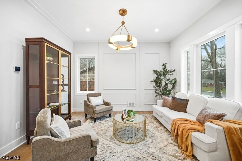 Nestled on a beautifully proportioned, flat 0.36-acre lot with a backyard facing the golf area in the sought-after Riker Hill section of Livingston, this exceptional NEW CONSTRUCTION Center Hall Colonial offers over 5,500 sq ft of refined living across three impeccably finished levels. The home features 6 bed/6.5 bath, w/ every bedroom designed as a private en-suite. A grand 2-story foyer introduces elegant interiors highlighted by hardwood floors, custom millwork and impressive 10-ft ceilings on the first floor. Designed for sophisticated living and effortless entertaining, the main level showcases formal living and dining rooms, a stylish powder room, functional mudroom, and a dramatic family room with soaring 20-ft ceilings and built-in speakers ready to connect your music to. Sliding doors lead to a paver patio overlooking the expansive backyard, ideal for a future pool. The gourmet chef's kitchen is a showpiece featuring a waterfall-edge quartz island, quartz countertops and backsplash, designer appliances, walk-in pantry, butler's pantry, and sunlit breakfast nook that is adjacent to the living area. The primary suite offers a luxurious retreat with a private balcony, custom his-and-her walk-in closets, and a spa-inspired bath with soaking tub, glass-enclosed shower, & dual vanities. The finished lower level offers a spacious recreation area with built-in speakers. A 2-car garage with EV charger outlet and a 10-year builder's warranty complete this exceptional home.