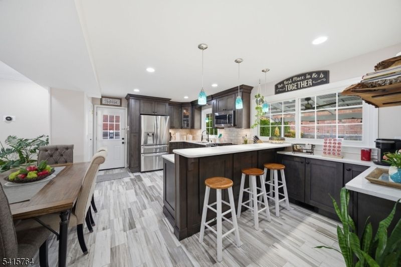 Exceptional and beautifully maintained two-family residence offering space, style, and modern upgrades throughout. This impressive property features 5 bedrooms and 3 full bathrooms, providing comfortable and versatile living. The first floor, renovated within the last five years, showcases a modern eat-in kitchen with quartz countertops, a charming coffee nook, and hardwood floors throughout, along with 3 bedrooms and 1 full bath. The second-floor unit offers 2 bedrooms and 1 full bath, with a kitchen updated in 2025. The finished basement adds valuable living space with a summer kitchen, family room, bonus room, and laundry area. Additional highlights include central air and heat throughout the home, newer windows, newer roof and siding, solar panels, water softener system, built-in speaker system, and a security system. The property also features an attached one-car garage, ample storage, and plenty of closets throughout the entire home. Enjoy outdoor living with a welcoming front terrace perfect for relaxing on summer days and a fully fenced backyard offering privacy and space for entertaining. A wonderful opportunity for owner-occupants or investors seeking a move-in-ready property with modern upgrades.Conveniently located near NYC.