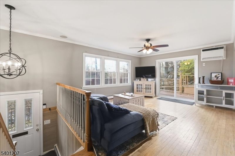 Discover a rare opportunity to own a bi-level home perched high on the Ramapo Mountains in Oakland's sought-after Crystal Lake community. Set on 1.36 acres carved directly into the hillside, this Southeast-facing retreat captures breathtaking sunrises, sweeping mountain vistas, and tranquil views of the Ramapo River and Crystal Lake below, yet remains safely elevated and high and dry above it all. Offering approximately 2,000 sq ft of inviting living space, the home blends natural beauty with everyday comfort. The spacious bedrooms with full sized closets and well kept bathrooms offer plenty of room to grow, rest, and recharge. A wrap around deck expands your living area outdoors, perfect for morning coffee as the mountains light up or quiet evenings surrounded by nature. The property's natural landscape is a blank canvas waiting for your vision whether you imagine a garden, a cozy fire pit area, or a peaceful private retreat amongst the trees. A workshop garage adds great functionality for hobbies, projects, or extra storage, and the upgraded lighting plus a three year young septic system provide convenience and peace of mind. All of this sits in a tranquil yet incredibly convenient neighborhood, just minutes from Routes 287, 208, and 17 for easy access to shopping, dining, and major commutes. This Crystal Lake hillside home offers unmatched scenery, privacy, and the perfect opportunity to add your own finishing touches an everyday oasis ready to make your own