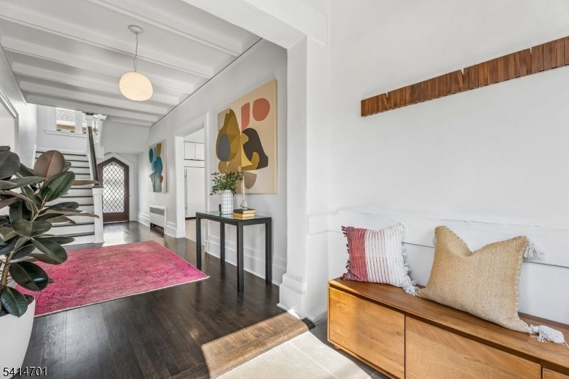 This exquisite home in the heart of Maplewood blends timeless charm with modern style. A grand foyer with a leaded-glass door and stunning 3-story staircase greets guests with refined elegance that resonates throughout. A renovated chef's kitchen is a culinary delight, with floor-to-ceiling custom cabinets and a wall of Crittall doors with views to a private patio perfect for outdoor entertaining or intimate dinners. The kitchen showcases Viking range/wall ovens, Miele dishwashers, and a Sub-Zero refrigerator. The island seats six and can host informal dinners or large celebrations. A two-way custom gas fireplace separates the kitchen from the dining area, infusing the space with warmth & character. Radiant flooring and central air further enhance the home's luxury and sophistication. The 2nd floor is thoughtfully designed with convenient laundry and a newly renovated main bath, while the sumptuous primary suite is a spacious sanctuary and retreat. Ascend to the 3rd floor to discover two additional well-appointed bedrooms (or a quiet office), full bath, and additional living space, well-suited for fun or curling up with a good book. Nestled on a tranquil street, this 5-bed, 3.1 bath home has space you will never outgrow, beautiful landscaping, and the privacy you crave. Conveniently located just 0.7 miles from town and train, this home is the perfect blend of serenity, style, and functionality.
